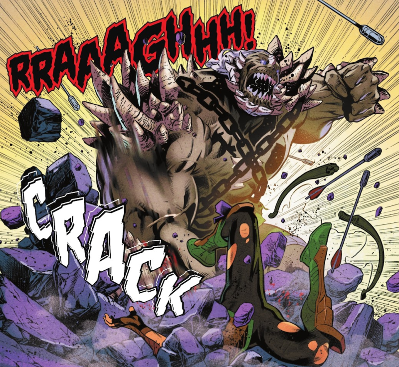 Page 28 – Panel 3: Black Canary’s scream decimates Doomsday.