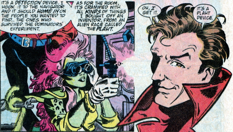 Snapper ends up teleporting back to the Omega Men’s ship during a dream, and meets the ship’s original owner, a feline alien called Churljenkins and together they steal the ship. They eventually end up back at Earth and, one by one, pick up the other members of the Blasters before almost accidentally destroying a secret Spider Guild weapons depot.