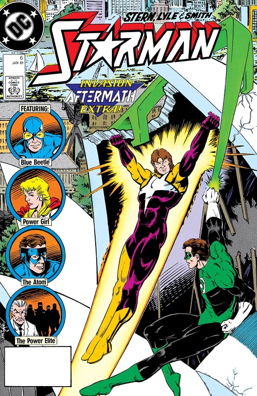 Hitching a lift with Blue Beetle, Starman gets back to Phoenix, Arizona and meets up with his sister. While catching up, he hears a live news report of a rampaging Durlan and how it was captured by the Power Elite, the team of extremist metahumans that he had fought days before.