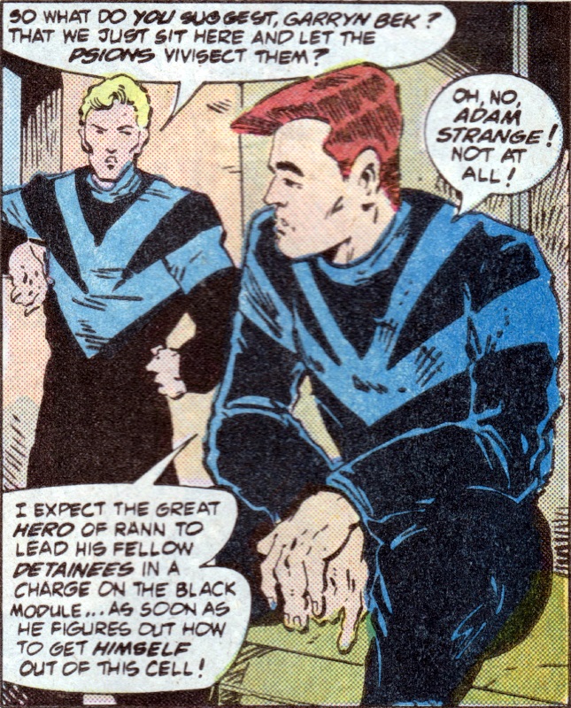 Page 60 – Panels 1 to 3: As Garryn Bek ponders whether or not Adam Strange had managed to escape, he is joined by a new cellmate . . .
