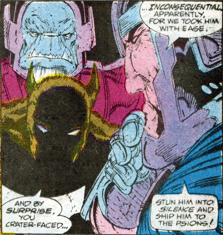 Page 35: While the individual panels aren’t worth commenting on, this page does highlight the dislike the Khunds, Psions and Durlans share for each other and make clear the Alien Alliance is a temporary thing.