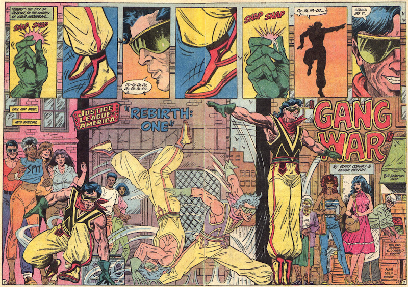 That’s right – a casual reader’s first introduction to the new League consists of two pages of Vibe breakdancing while Vixen and Zatanna look on. This is followed by another page of Vibe dancing while Vixen and Zatanna use his routine to illustrate how much the League has changed. Honestly, it’s not the best way to start a comic about superheroes, but it is different. Can you imagine anything similar being played straight in today’s DCU?