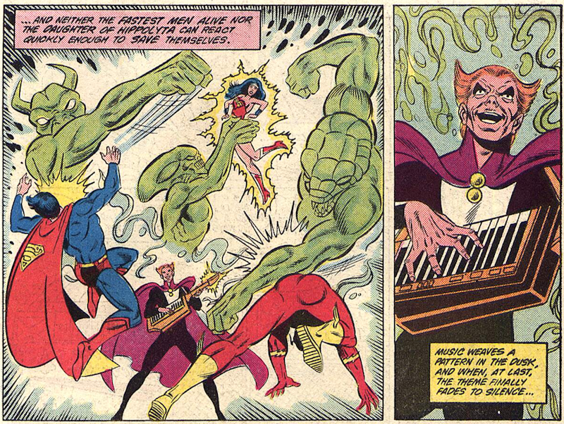 Needless to say the League trounce the bad Communists until Maestro starts playing that darned keyboard of his again. Just as the tide turns, Allegro steps up and smashes the musical weapon but is then killed in turn by the Russian general. In anger, Gypsy discovers she can project a mental image into his mind, causing him to breakdown.