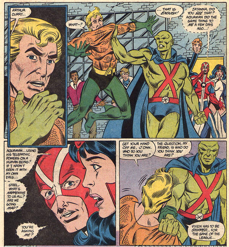 As an aside, when this was originally posted on my old blog, the now late-lamented Snell commented “Seeing Zatanna so distraught because a leaguer used their power to mind-control somebody is pretty amusing in light of later retcons…“