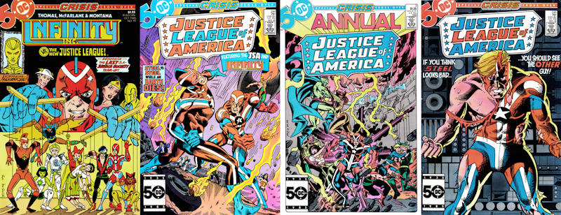 It’s almost as if the Crisis passed DC’s premier team by, resulting in a crossover in name only. Even in the CRISIS ON INFINITE EARTHS title, the League plays almost no part in the action.
