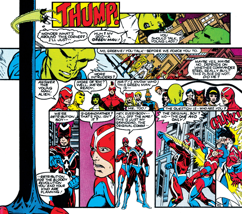 And just like that, the two teams are at each other’s throats with Commander Steel taking on his own grandson. Despite the Commander’s words about the League planning a “bloody revolution” and being “traitorous rebels” some of the Infinitors begin to harbour doubts about the rightness of the situation, particularly Silver Scarab and Fury.