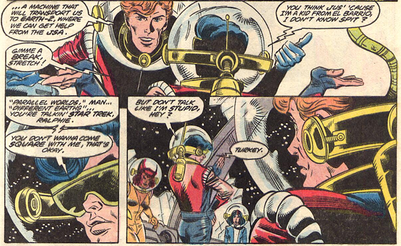 Maybe there was something to that whole “readers are confused by the Multiverse” excuse DC gave for the Crisis happening if their characters can’t believe in it! Of course, it all becomes moot for Vibe when he’s dragged into the Transmatter and they’re off to Earth-Two.