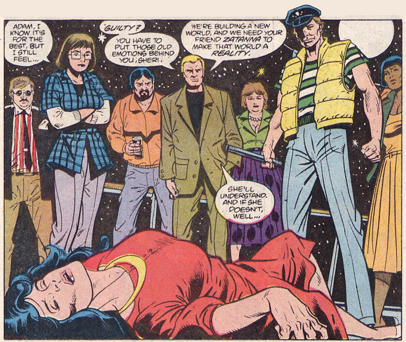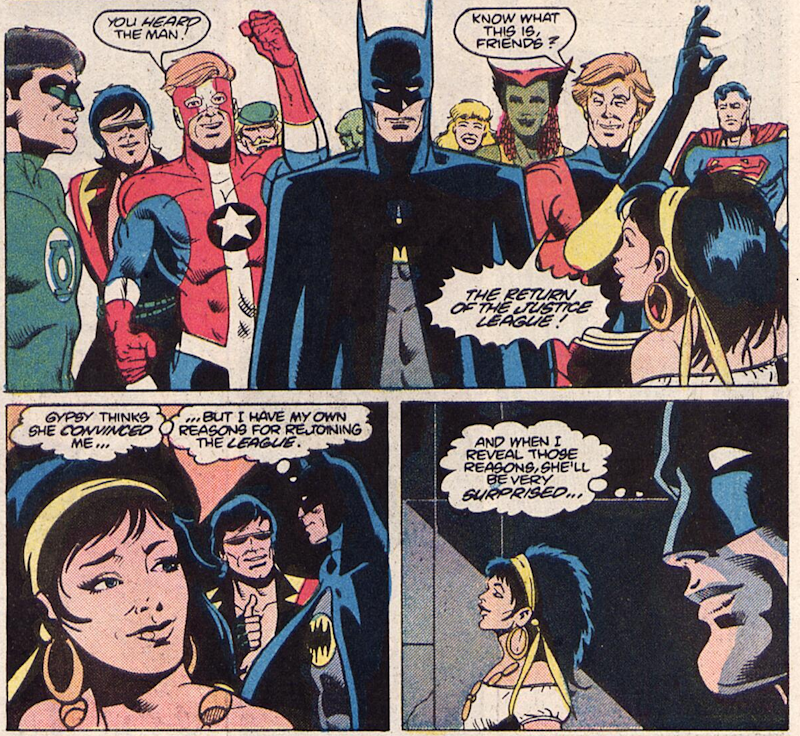 Still, the plan works and the Leaguers are restored and an impromptu celebration held. Obviously the question gets asked: will the old guys rejoin the League full time? The only one who is willing to do so, apparently at Gypsy’s insistence, is Batman: