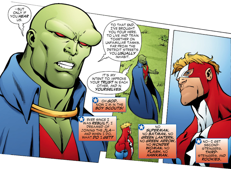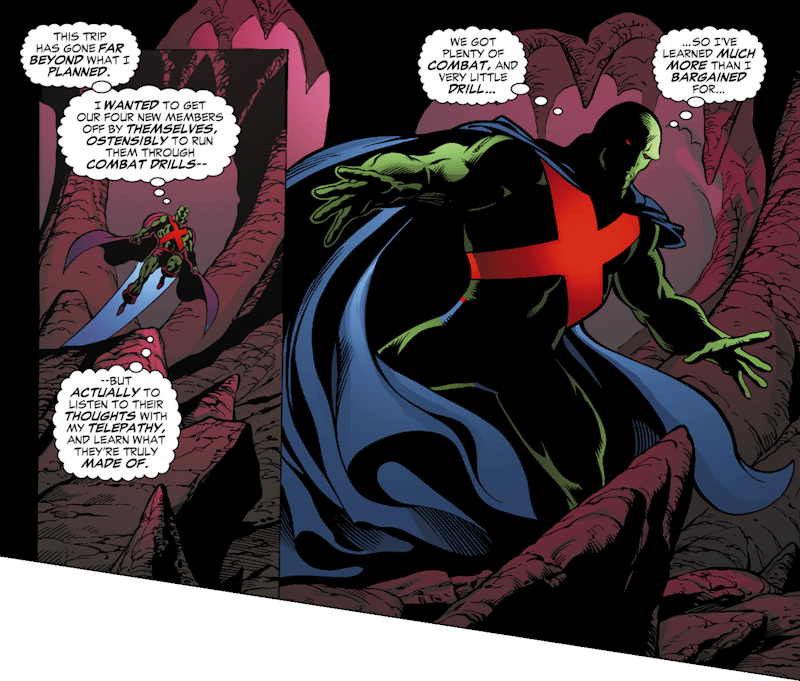 Martian Manhunter, one of the most noble of characters, wanted to secretly listen to his new team-mates’ thoughts. How out of character is that?