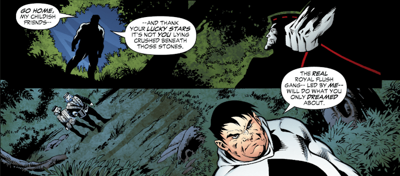 It’s Gypsy who finds the Royal Flush Gang in time to hear Amos Fortune / Ace out line his plan to kill the League: