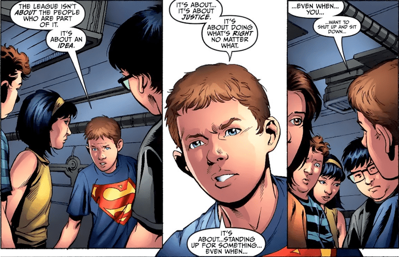 As the tour begins, though, one of the children wonders where the real heroes are and calls the Detroit League “nobodies. Just a bunch’a losers.” which elicits this response from one of his classmates: