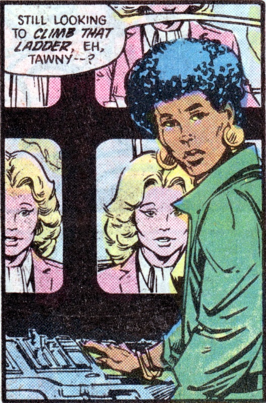 Page 4 – Panel 2: That’s Tawny Young in silhouette, a reporter who bothered the Green Lantern Corps around this time, particularly John Stewart. The “Green Lantern marriage” she refers to would be that between Stewart and fellow Lantern Katma Tui.