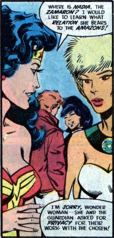 Page 13 – Panel 5: Wonder Woman assumes there’s a relationship between the Zamarons and the Amazons which is random to say the least. Is it based on the vague similarity between the Zamarons’ armour and that of the Amazons?