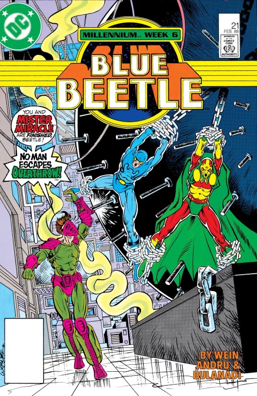 Blue Beetle and Mr Miracle head to Kord Industries where Beetle has a vehicle that can be modified to take the heroes to the Earth’s core where the remaining Manhunters are based, as they discovered in MILLENNIUM #6.