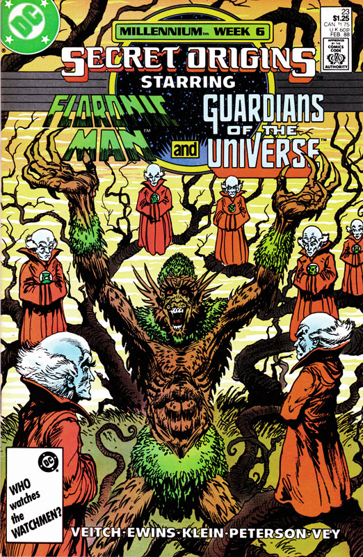At Arkham Asylum, Killer Croc tells of the origin of the Floronic Man; his early experiments and battles against the Atom; his transformation from a man into a plant creature; his joining the Secret Society of Super Villains; his connection with the Swamp Thing; before his selection by the Guardians as one of the Chosen.