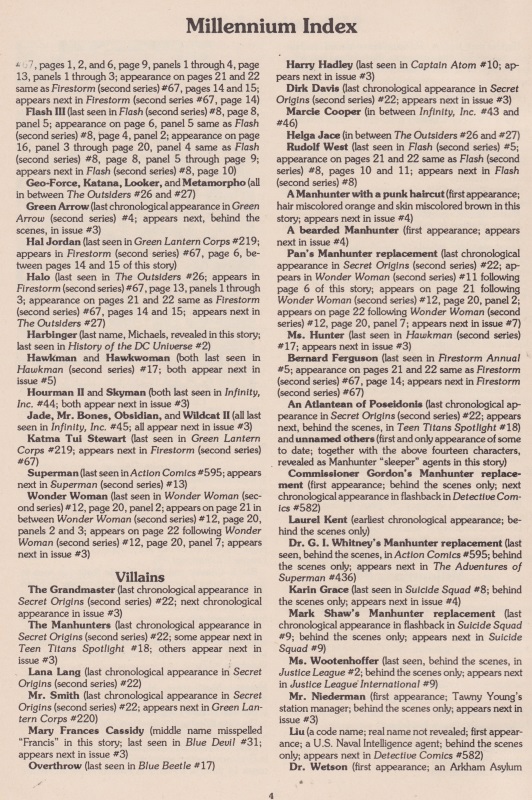 The Independent Comics Group, an imprint of Eclipse Comics, specialised in produced indices of various DC titles and events, capturing a level of detail that puts to shame an enthusiastic annotations amateur like myself.
