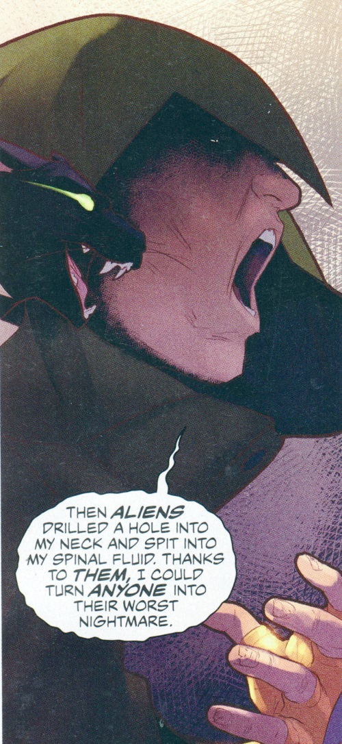 As you can see above, Atom and Killer Frost are in the wonderfully named Museum of Unnatural History trying to find a cure for her condition when they’re attacked by a guy who hasn’t been seen for many, many a moon – Terrorsmith, one of the villains created in the original Bloodlines event from 1991. And it is that original event, not the Bloodlines series from last year that had next to nothing to do with the 1991 crossovers as Terrorsmith himself explains: