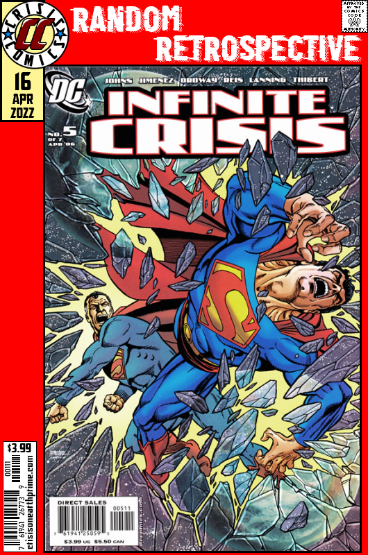 When INFINITE CRISIS #5 turned up in my random list of back issues to chat about, I almost threw it back and selected something else. After all, I annotated the damn thing as part of the very first series of annotations I did way back in the mists of time (actually probably about 2006 or so.) However, the gods of randomness, whoever they may be, have decided that we’re taking a lower level look at this so here we go.