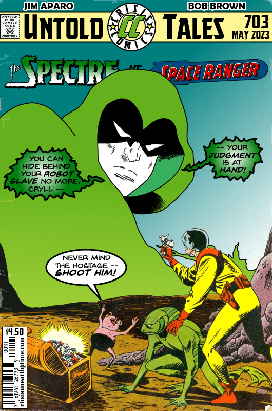 It had to happen! One last chapter in the Crimes of Cryll saga! In UNTOLD TALES #703, the Spectre stepped in to finally bring Cryll to justice, only to help Space Ranger in UNTOLD TALES #747 escape the alien’s final attack but now Space Ranger himself has had enough and seeks vengeance against his one-time friend! Can the Spectre stop him . . . should the Spectre stop him?!