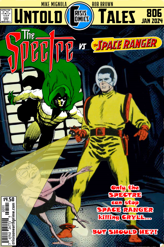 It had to happen! One last chapter in the Crimes of Cryll saga! In UNTOLD TALES #703, the Spectre stepped in to finally bring Cryll to justice, only to help Space Ranger in UNTOLD TALES #747 escape the alien’s final attack but now Space Ranger himself has had enough and seeks vengeance against his one-time friend! Can the Spectre stop him . . . should the Spectre stop him?!