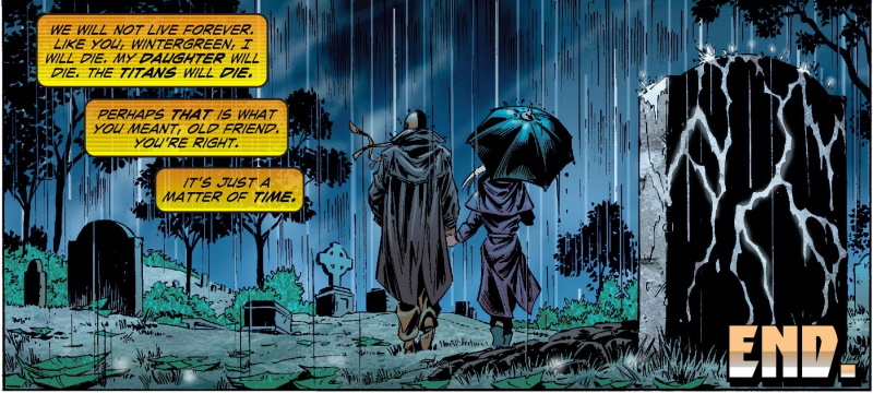 The other members of the team get a spotlight, too, but topping and tailing the issue is Deathstroke at the grave of Wintergreen, planning his vengeance against the Titans, and enlisting his daughter Rose who will become the new Ravager.