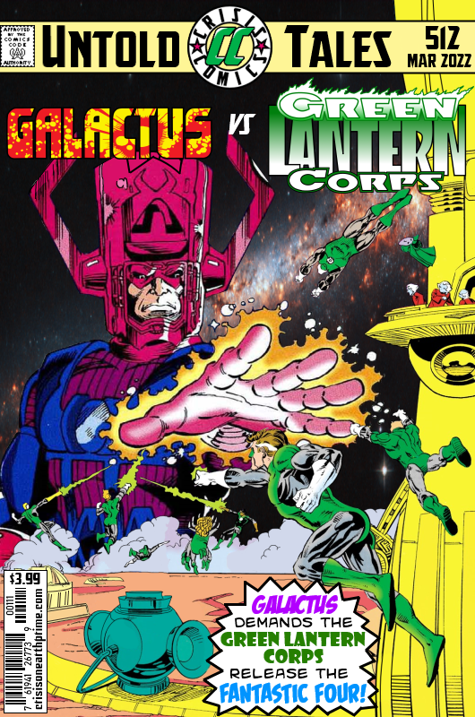 The last time Green Lantern captured the Fantastic Four (back in October last year) regular commenter Dale suggested Galactus should get involved to free them. While I don’t normally take suggestions, as soon as I read that, this cover from GREEN LANTERN sprang to mind.