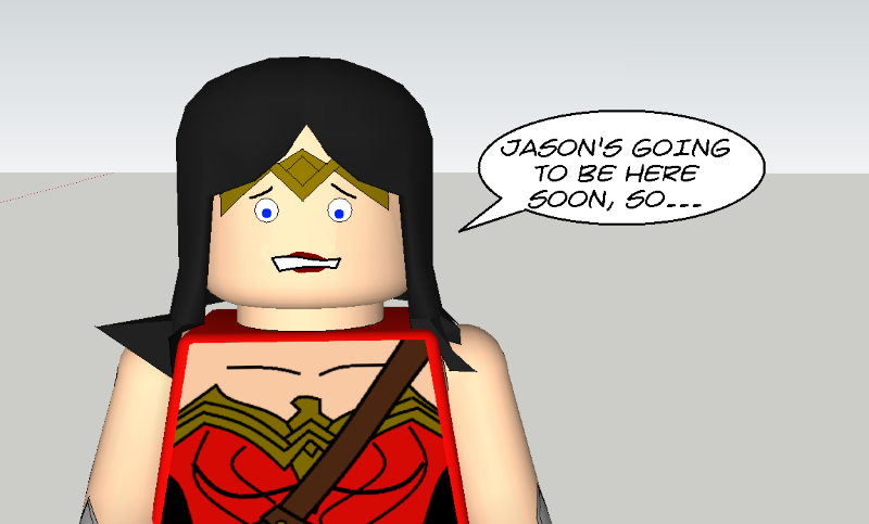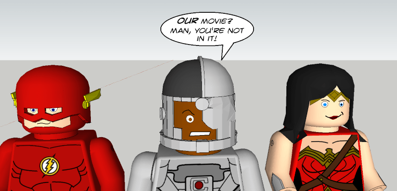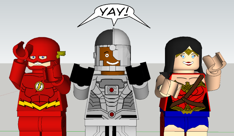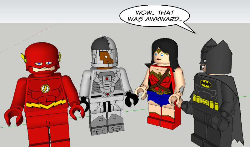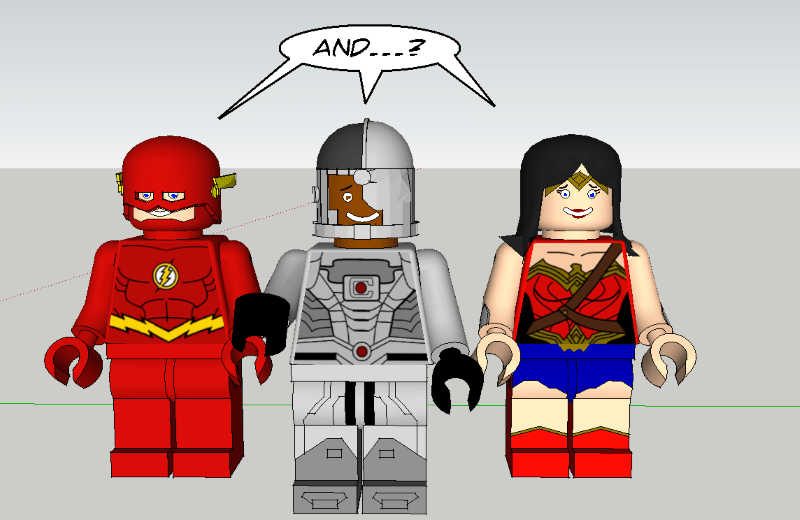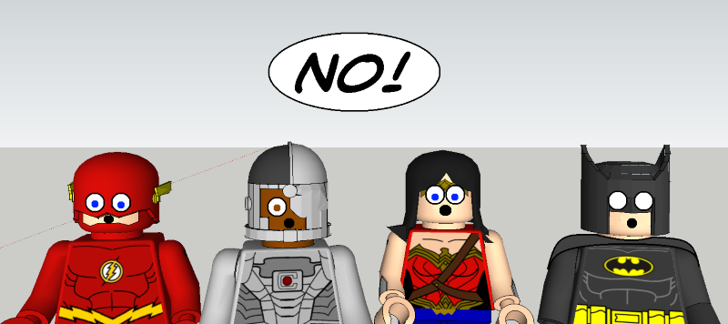 I’ve made a new sketch for Justice League Day on Saturday – took a little longer for two reasons: first, it has eighteen pictures in it, and second, I had to create some new models in SketchUp.