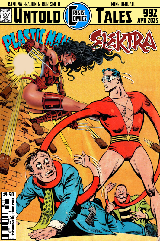 The bad guys look as surprised as Plastic Man to have Elektra bursting on to the scene – whose side is she going to be on?