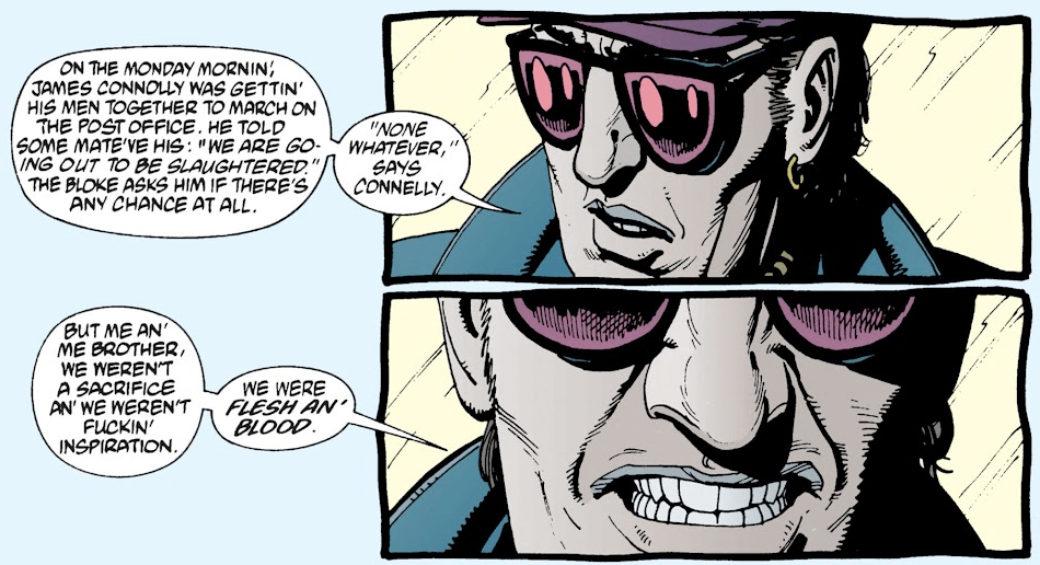 We get to see Cassidy’s first group of friends that he made after landing in New York, though the only one with any real personality is Mick MacCann – the others are little more than a couple of appearances, and a couple of catch phrases, a device that Ennis relies on too heavily in a lot of his other work. There’s ruminations on the Easter Rising of 1916 which was covered in the previous issues, and Cassidy’s not a fan: