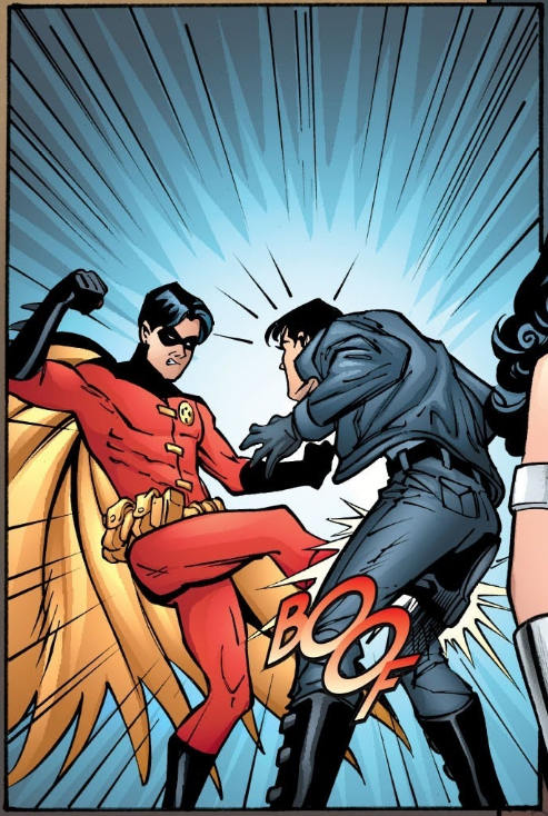 Random Panel: Boof! TEEN TITANS #47 I don’t know that BOOF is the best sound effect for Tim Drake kicking Jason Todd in the nuts . . . but it seems to work. Share this: Click to share on Bluesky (Opens in new window) Bluesky Click to share on Reddit (Opens in new window) Reddit Share on Tumblr Click to email a link to a friend (Opens in new window) Email Click to share on Threads (Opens in new window) Threads Click to share on WhatsApp (Opens in new window) WhatsApp Click to share on Mastodon (Opens in new window) Mastodon Like Loading...