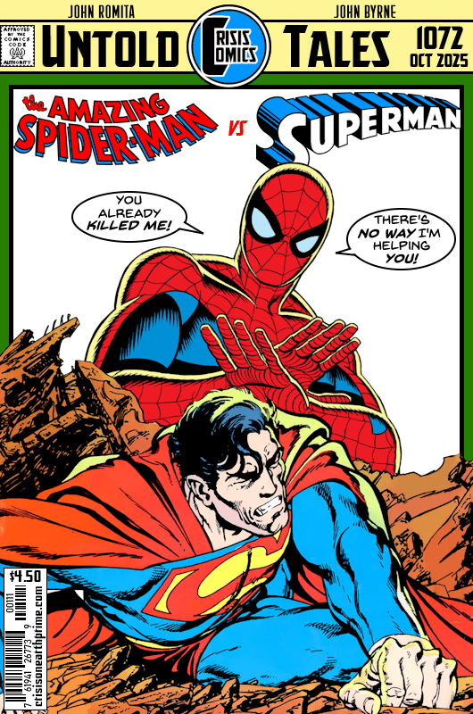 And the powerless Superman trilogy ends with Spider-Man refusing to help him . . . after all, Superman caused Spidey’s death back in UNTOLD TALES #1057!