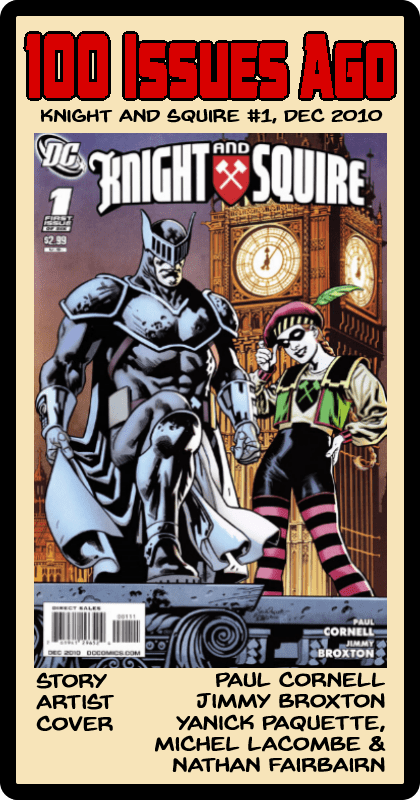 I think I saw a three or four page taster of this issue either in the back of another comic, or perhaps in Previews, but either way I was sold. I know nothing by Paul Cornell at the time and only had a vague idea of who Knight and Squire were thanks to some appearances in JLA by Grant Morrison, but the humorous tone – and decidedly British humour as well – displayed in the sample worked a treat for me so I picked this up.