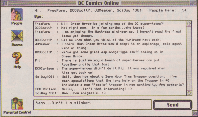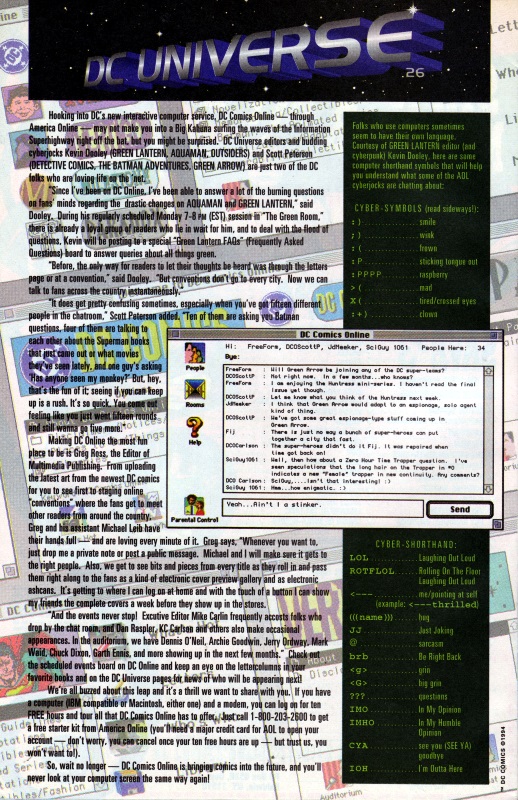 DC Online was run through America Online (remember that?) and was set up as a series of chatrooms where fans and DC staff could talk with each other: