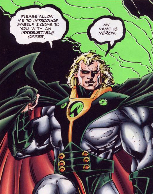 Page 34 – Panel 5: Neron refers to Superman and Green Lantern; Mongul was responsible for the destruction of Coast City, Green Lantern’s home, which ultimately led to Lantern’s fall from grace and his part in ZERO HOUR.