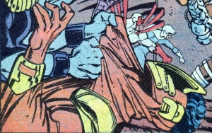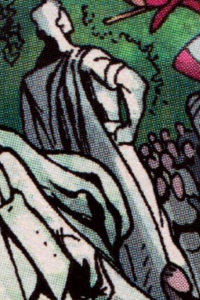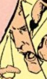 Page 13 – Panel 2: In front of the OMAC with the green top. | Page 18 – Panel 4: Unknown Justifier. | Page 30 – Panel 2: Two for one, here with the balding guy facing us and the man looking to one side. |