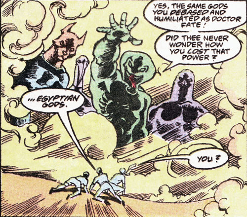 Page 5 – Panel 2: Despite the caption saying Egypt, this is actually Iraq where we find Abdul, Thomas Bridges, and Kent Nelson, formally Dr Fate. This whole scene is a re-run from DR FATE #33.