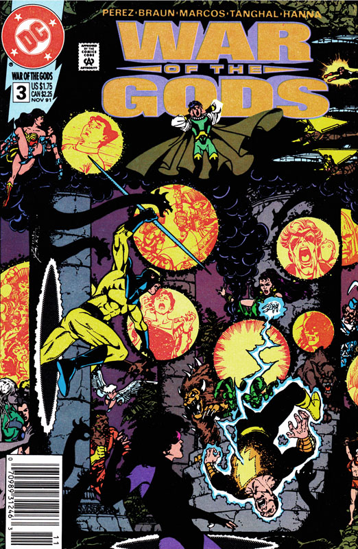 Page 14 – Panel 2: Madame Xanadu mentions a Shaman that has, apparently, given them the recipe to replicate one of Circe’s spells. A Shaman appeared in ANIMAL MAN #40 but said nothing about spells, Circe or, indeed, this whole War of The Gods thing! From an editorial standpoint, this looks like another crossover connection that doesn’t add up.
