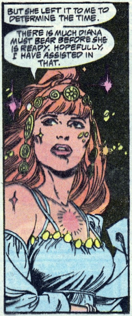 Page 7 – Panel 4: Diana mentions Hecate’s curse that whoever kills Circe would be then possessed by Hecate.