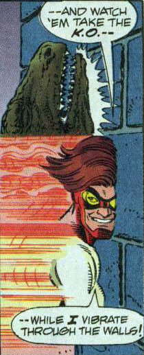 Page 5 – Panel 5: Vibrating through walls was a trick perfected by Impulse’s grandfather, Barry Allen, the second Flash.